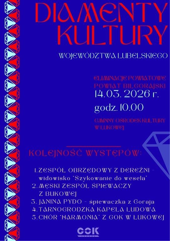 14 marca 2026 roku w GOK w Łukowej zaprezentują się najlepsi artyści młodzieżowi i ludowi.